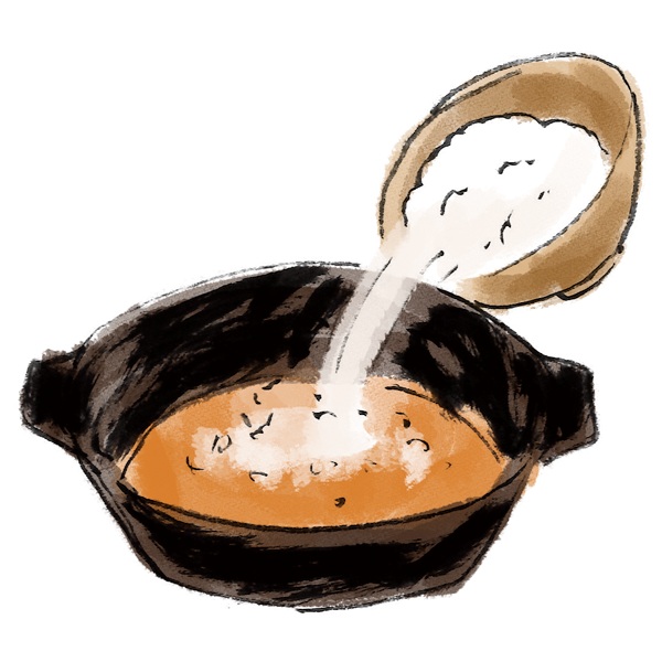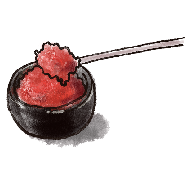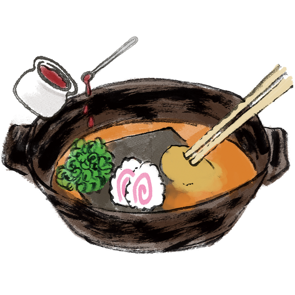 二、削り粉や辛味だれを少しずつ溶かして味の変化を楽しむ。