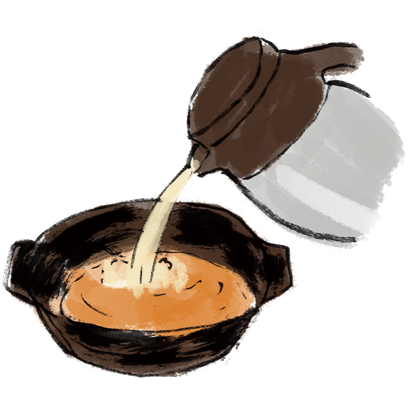 特製の和風出汁を入れてご提供。香り豊かな出汁と一緒に、最後まで温かい状態でお召し上がりいただけます。