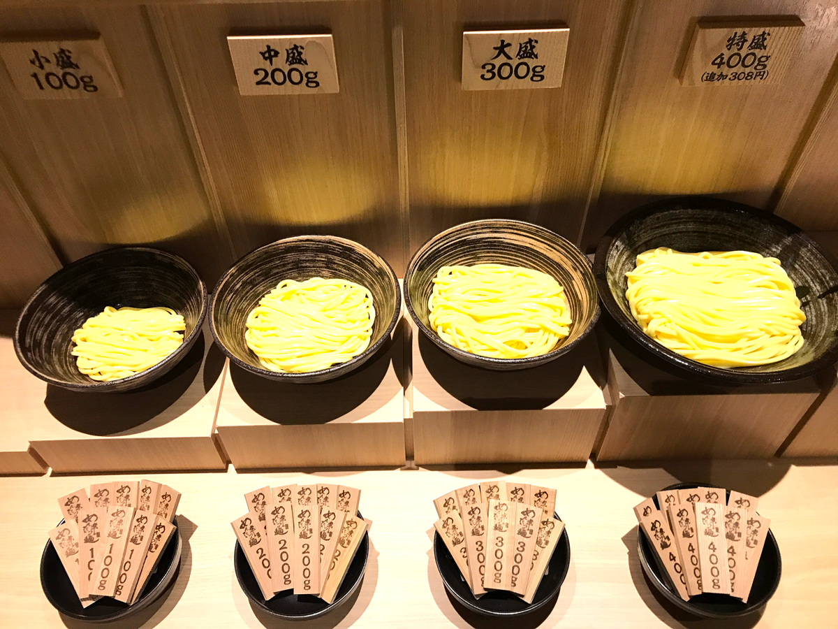 ご来店時に、麺の量を木札でお選びいただく、ユニークなスタイルです。