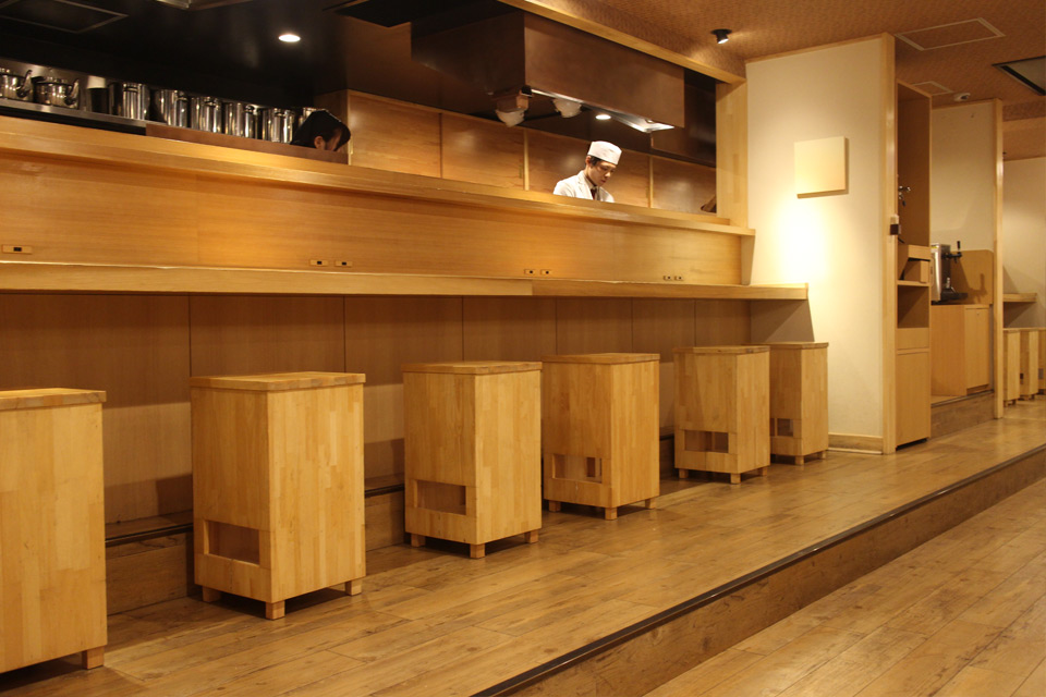 池袋の喧騒を一時忘れてしまう静謐なエントランス。隠れ家的な料亭を思わせる暖簾をくぐると柔らかな光に包まれた空間が広がります。白木をふんだんに使用し、木の温もりを感じられる店内。 琴の音色に包まれる空間は女性のお一人様も気兼ねなくゆっくりとお召し上がりいただけます。
