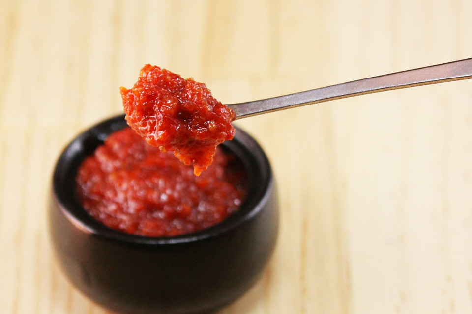 めんたい煮こみつけ麺のために作った当店オリジナル『辛味だれ』。