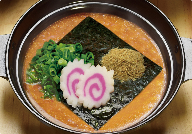 コクのかたまりである明太子と10種類以上の野菜をふんだんに使用した「めんたい煮こみつけ麺」。